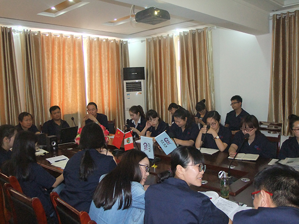 最后,由工程師司工和外貿(mào)部呂部長結(jié)合我廠主打設(shè)備,通過視頻和圖片演示并講解了選礦工藝流程及各設(shè)備的結(jié)構(gòu)和工作原理,并對業(yè)務(wù)人員在工作中遇到的問題和難題做出詳細(xì)、準(zhǔn)確的解答。好記性不如爛筆頭,在培訓(xùn)過程中,大家都認(rèn)真的聽寫。