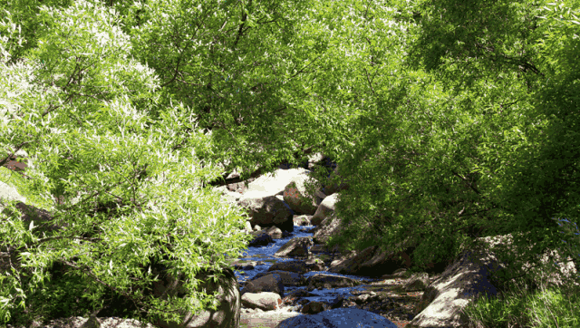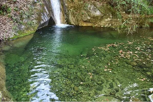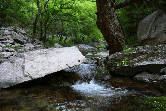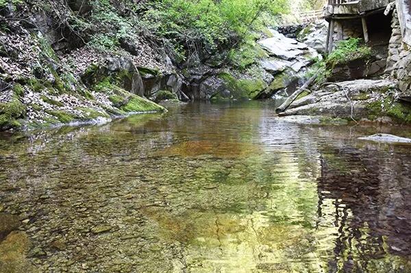 蝴蝶谷海拔1200多米,中間谷底貫穿一條溪流,因谷內(nèi)蝴蝶而得名,古人曾留下“蝶谷游人多好奇,以物擊之散又聚”的絕妙詩句。沿著溪流逆流而上,見的最多就是池潭、泉眼和瀑布,清澈見底,湍流不止。