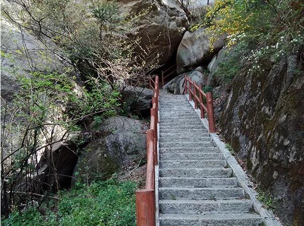 與蝴蝶谷明顯不同的是,群峰險(xiǎn)峻、怪石林立,潺潺溪流,千姿百態(tài),具有峽谷幽壑景觀。從纜車售票廳到顯圣峰觀景臺(tái)(海拔1961米),陡壁奇石層出不窮。圣心石、通天洞、云霄凌索、懸空棧道、天梯、五圣峰等等,非常的宏偉有氣勢,無時(shí)不在挑戰(zhàn)體力的極限和視覺上的沖擊。