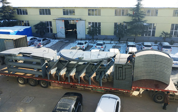 滑架式污泥料倉主要包括:雙螺旋進料輸送機、料倉本體、料倉支架、滑架裝置、液壓系統(tǒng)、電動刀閘閥、料位計、爬梯、欄桿、檢修平臺、電氣控制系統(tǒng)等。