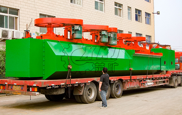 在葉輪旋轉(zhuǎn)時,便在豎筒和導(dǎo)流管內(nèi)產(chǎn)生渦流,此渦流形成負(fù)壓,將空氣從進(jìn)氣管吸入,在葉輪和定子區(qū)內(nèi)與經(jīng)導(dǎo)流管吸進(jìn)的礦漿混合。該漿氣混合流由葉輪形成切線方向運(yùn)動,再經(jīng)定子的作用轉(zhuǎn)換成徑向運(yùn)動,并均勻地分布在浮選槽中。礦化氣泡上升至泡沫層,單邊或雙邊刮出即為泡沫產(chǎn)品。