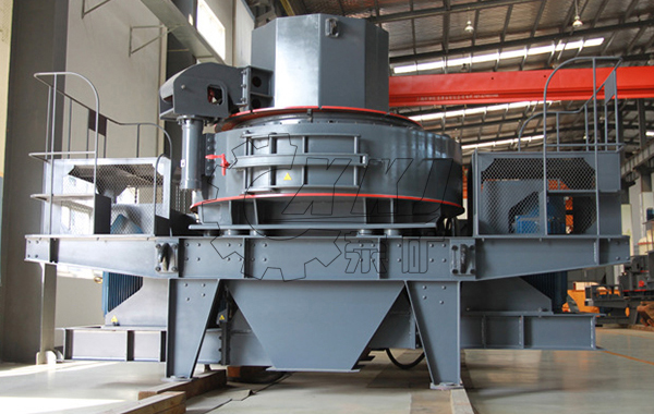 石料由機(jī)器上部直接落入高速旋轉(zhuǎn)的轉(zhuǎn)盤,在高速離心力的作用下,與另一部分以傘型方式分流在轉(zhuǎn)盤四周的靶石產(chǎn)生高速度的撞擊與高密度的粉碎,石料在互相打擊后,又會在轉(zhuǎn)盤和機(jī)殼之間形成渦流運(yùn)動而造成多次的互相打擊、磨擦、粉碎,從下部直通排出。形成閉路多次循環(huán),由篩分設(shè)備控制達(dá)到所要求的粒度。