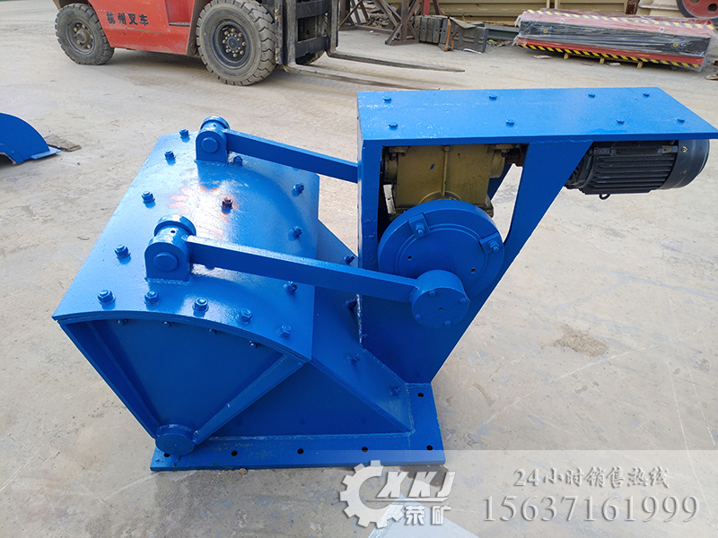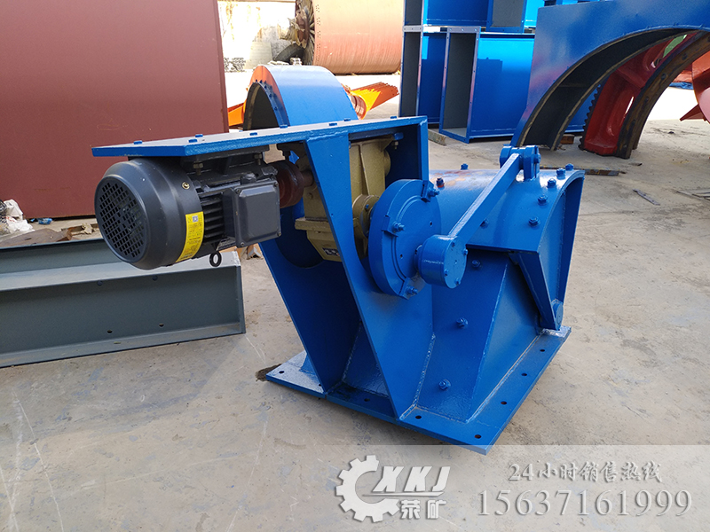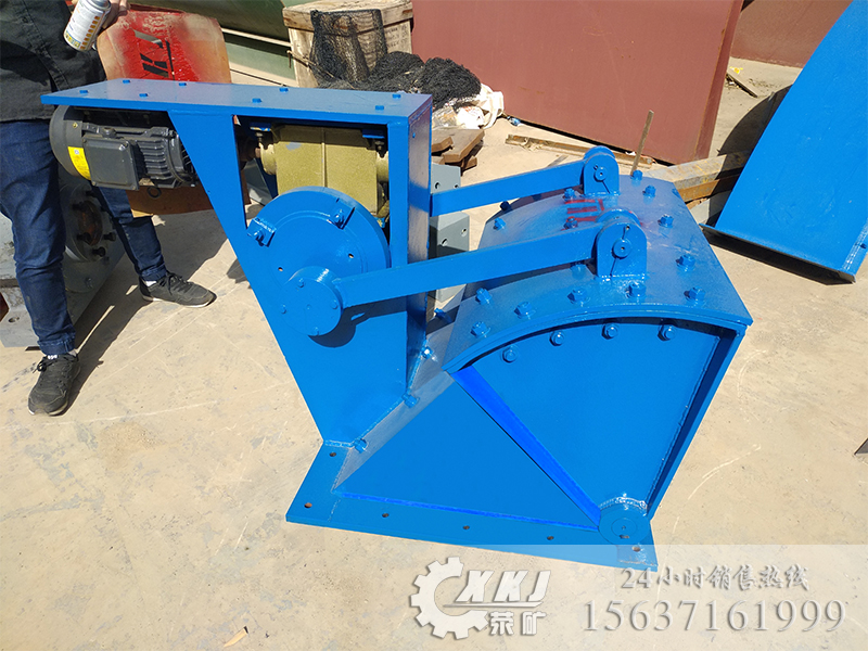 電動機(jī)通過三角帶減速器減速。經(jīng)減速的動力傳遞到可調(diào)偏心距的偏心輪。再由偏心輪通過連桿,驅(qū)使擺動底板作往擺動,位于給料機(jī)上方礦倉的礦石,經(jīng)過給料機(jī)機(jī)體內(nèi)腔,由排料口,一次次勻速的排出機(jī)外,確保給球磨機(jī)均勻地喂料。